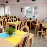 Dom serwuje cztery posiłki dziennie – śniadanie, obiad, podwieczorek, kolację – przygotowane według zaleceń dietetycznych i zgodne z gustami mieszkańców. Kuchnia działa we własnych warunkach i wspiera zdrowy styl życia.