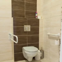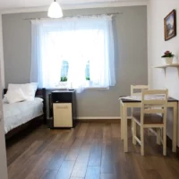 Dzięki szerokim korytarzom, windom oraz brakowi barier architektonicznych, mieszkańcy poruszają się swobodnie i bezpiecznie. W otoczeniu domu znajduje się przydomowy ogród, który sprzyja spacerom i chwilom relaksu.
