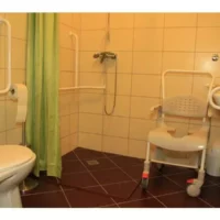 - Łazienki: Każdy pokój posiada własną łazienkę przystosowaną dla osób starszych i niepełnosprawnych.